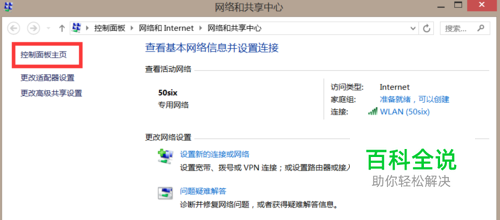 2.打开【网络和共享中心】以后,点击【控制面板主页】按钮,如下图所示。