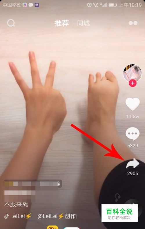 继续寻找,当找到一段添加贴纸道具视频后,我们点击右边栏下方的“分享”按钮