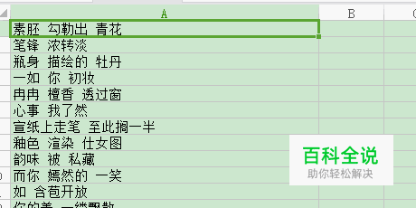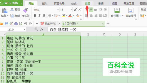 打开我们需要分开的数据(以下操作以歌词为例),全部 选中文字(Ctrl+A),点开数据下面的菜单栏。