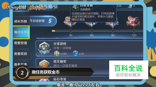 做任务获取金币,每天一般可以225左右,如果全部做完的话有325金币