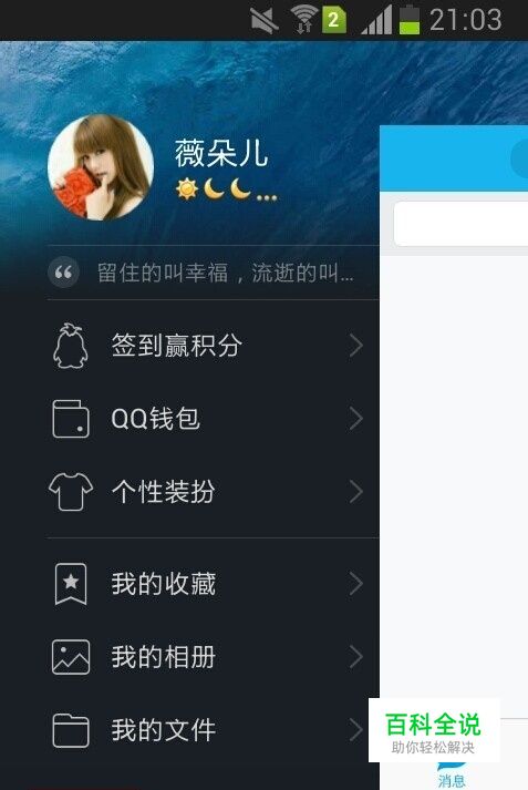 首先登录手机上的QQ,同时输入账号和密码,进入QQ页面,单击手机左上角的头像