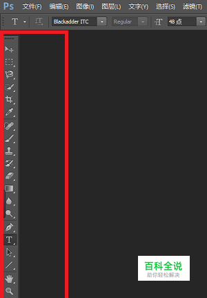 如下图,左侧的是工具栏,有移动工具、选框、裁剪工具、橡皮擦、画笔、仿制印章、渐变工具、放大镜、钢笔工具、文字工具等等(具体的功能之后详细介绍)