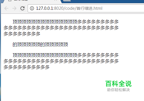 使用浏览器打开,即可看到首行缩进的效果。如图: