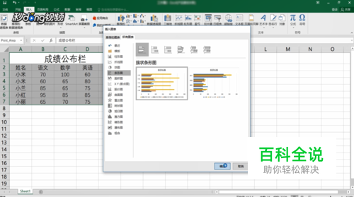 然后点击“推荐的图表”,点击“所有图表”,有多种图表类型,选择需要的图表,点击“确定”,这里选择的是条形图。