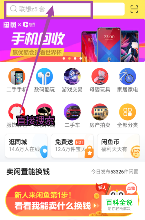 打开闲鱼,点击一个想要购买的商品或者直接搜索