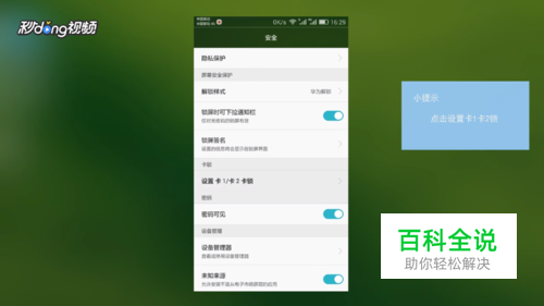 当你想要解锁SIM卡的密码时,也同样进入设置,点击“安全”,点击“设置卡1卡2锁”,点击右方按钮,在弹出的框内输入SIM卡密码就解锁成功了。