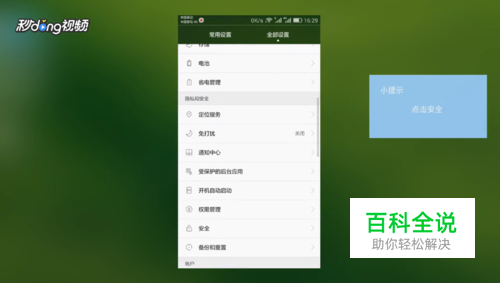 首先进入设置,下拉找到“安全”选项。