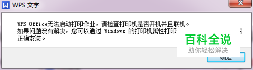 例如,我们在使用局域网打印机打印文档时,不知何故出现“WPS office 无法启动打印作业,请检查打印机是否开机并联机”,其实打印机也开机了并且也联机了。