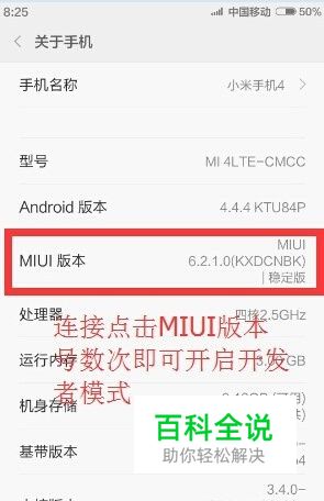 首先,我们需要打开小米4手机USB调试开关。依次进入“设置”->“关于手机”界面,连续多次点击“MIUI版本号”,即可开启“开发者模式”选项。