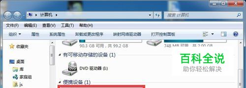 此时打开“计算机”,在此窗口中就可以找到“MI 4LTE“便携式存储设置”盘符,此盘符就是小米4的手机内存空间。