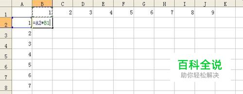 计算第一个结果,很简单,就是在B2第一个输入=A2*B1,只进行这个计算是没错的。
