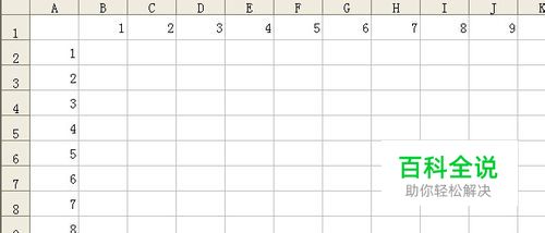 本例使用九九乘法表的方式来学习绝对应用的使用,我们先输入一行 一列数据 ,都是从1到9.如图