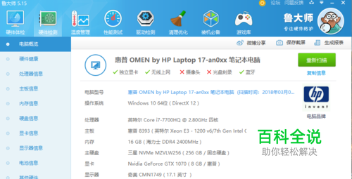 安装鲁大师,选择硬件检测。就可以在看到主要硬件的列表和一些性能参数。 如果是联网状态,选择驱动检测,就可以安装和更新驱动。 当然硬件检测和驱动安装不如一些更专业的软件,但是一般情况也够用了。