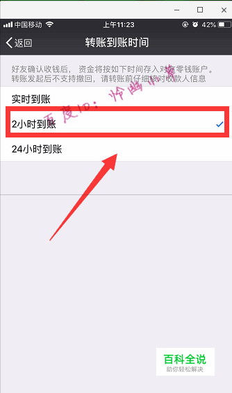 选择2小时或24小时到账,这里选择“2小时到账”。