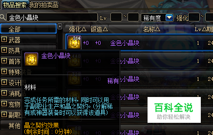 金色小晶体也不是很容易搞到,一般都是通过拍卖行兑换,其它方式比较难获得,如图所示。