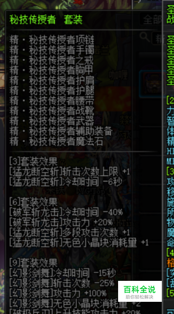 接着我们需要秘技9件套,因为9件可以给我们的破极兵刃增加属性