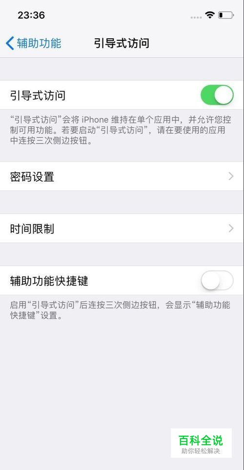 进入辅助功能打开引导式访问,并开启面容ID