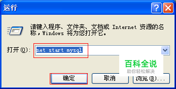 打开电脑的“开始”菜单栏,找到“运行”,在运行框中直接输入:net start mysql。再点击确定按钮,如下图: