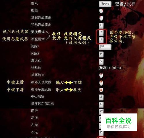 人类模式,右键开枪, 天使或恶魔模式,右键鞭子。