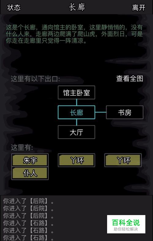 在馆主卧室,打开箱子有短剑。在书房,翻找书架能获得书信,可以交给三人之一,获得奖励。 朱夫人:获得步辇图(只能获得一次),能卖3000两碎银 范先生:得银子 朱馆长:得潜能点