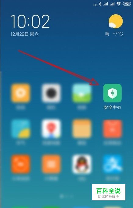 首先我们在小米手机主界面左右的滑动屏幕,在屏幕上找到“安全中心”的图标。
