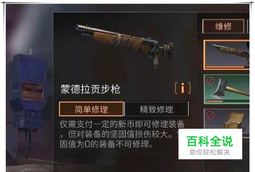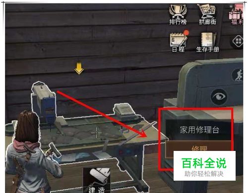 这时,我们可以通过家用修理台来对坚固值为0的武器装备进行分解,可以获取到一定的材料。操作步骤如下:点击家用修理台的“修理”菜单。