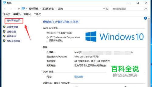 选择控制面板主页进入,如下图所示