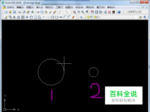 打开CAD,我这里使用的是2008版本的。 我们现在在绘图面板中画两个圆,大小位置根据自己需要,我这里就随意画了。