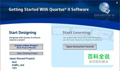 首先,打开Quartus II 应用程序,并选择创建新工程按钮。
