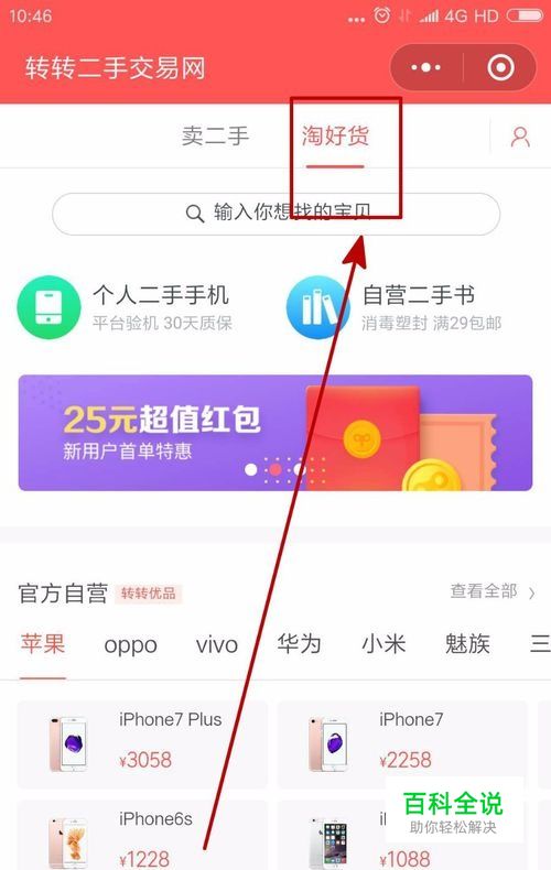 我们点击“淘好货”标签可以进入转转二手货购买页面,可以查找自己想要的二手货商品。