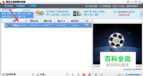 点击编辑按钮。可编辑的项目有:截取视频片段、剪切视频黑边、添加水印、视频合并、调节亮度、对比度、添加字幕等,接下来我就为大家简单介绍一下如何使用以上这几种功能,点击主界面上方的“视频编辑”按钮。 截取视频:截取视频的方法有两种,第一种是直接拖动截取滑动条截取;第二种则是输入准确时间值截取,在开始时间和结束时间后面的方框里输入 - 小时 : 分 : 秒 : 毫秒。两种方法任选其一皆可!