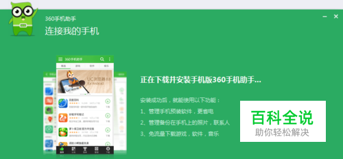 打开“USB调试”开关之后,点击开始连接,进入手机与电脑连接界面。