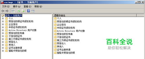 选择受信任的根证书颁发机构,可以看到右边列表中显示出本机的所有受信任的根证书信息。