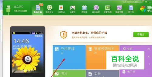 打开手机助手,如图,点击应用管理,