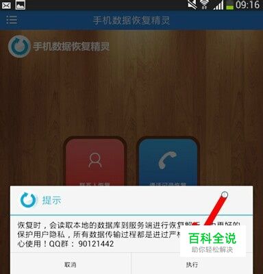 点“执行”后,现在在手机上可以看到软件正在恢复的进度界面,这时只需要等一分钟左右就可以了,如图;
