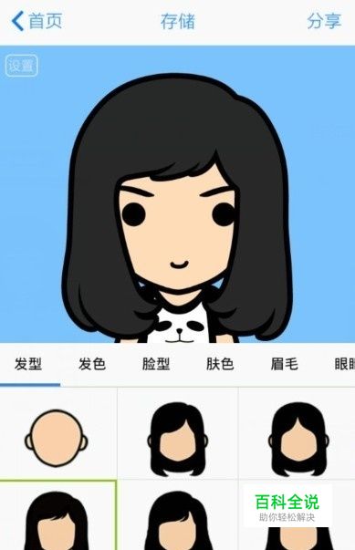 接下就是你设置你喜欢的萌图样子吧!可以选择发型,发色,脸型,肤色,眉毛,眼睛等等这一些的设置,本人对萌了解不是很深所以就一一演示了。