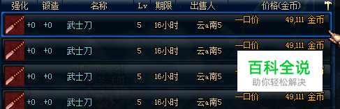 我们搜一下拍卖场里武士刀的价格,差不多5W一把。但是它的成本呢?却只有5000金币。这样子赚下去,在DNF里是早晚的土豪啊。
