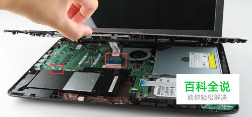 把键盘拿走之后就是这个样子啦,然后途中圈起来的位置就是硬盘啦,还是先把数据线拔掉(按照第二步的拔线方法),拆掉我圈出来的螺丝,此时你晃动硬盘发现硬盘能动了,然后按照我标的剪头的方向拖动,硬盘就拖动啦,然后把硬盘后侧左右摇动,记得动作小点,就可拿出来啦