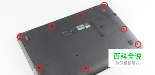 首先将电脑关机,将电脑的反面放在桌上,就像图片这个样子,然后拿出螺丝刀把图片上所圈出的螺丝拆掉,拆的时候注意螺丝的位置,最好不同位置的螺丝放在不同的地方,因为螺丝的大小不一样,混在一起放会导致装回来的时候笔记本螺丝拧不紧,或者说拧不进去!!!