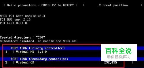 然后会看到MHDD运行的过程,很快就启动完成了,这时到了选择硬盘的界面,如图(介于拍摄不方便,改用虚拟机来操作进行截图), 图中,各个驱动器信息都可以看得到的,一般来说,大家在检测硬盘时都是只接一个硬盘的,所以在这里选择:1,再回车。