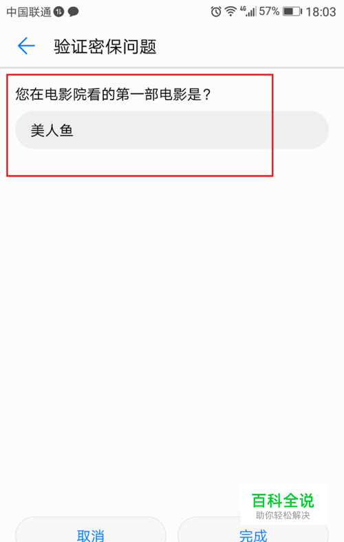 第二步输入设置密码时选择的密保问题,点击完成,如下图所示: