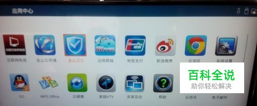 将拷入U盘的电视猫连接至康佳智能电视上,本次主要讲的是通过金山卫士安装电视猫应用(康佳智能电视的应用商城都有金山卫士),下载完成后启动金山卫士。