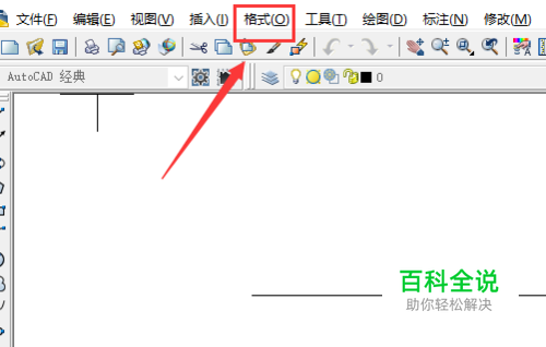 对于我们来说,CAD是默认不显示线宽的,也就是说我们在使用CAD画图的时候,画出来的线都是一样粗细的。首先我们点击工具栏上面的格式。