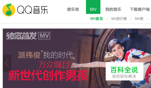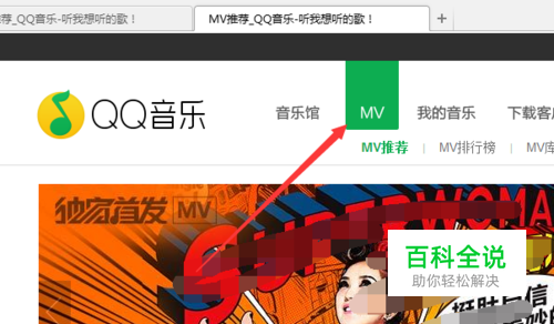 进行打开qq音乐的网页的首页的位置,进入到首页之后进行点击“mv”的选项