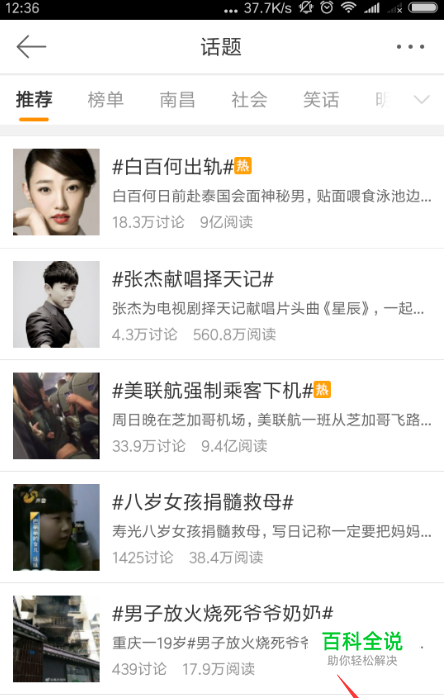 进入自己的话题页面后,可以看到自己之前关注过的话题,我们可以选择一个关注过的话题进入。
