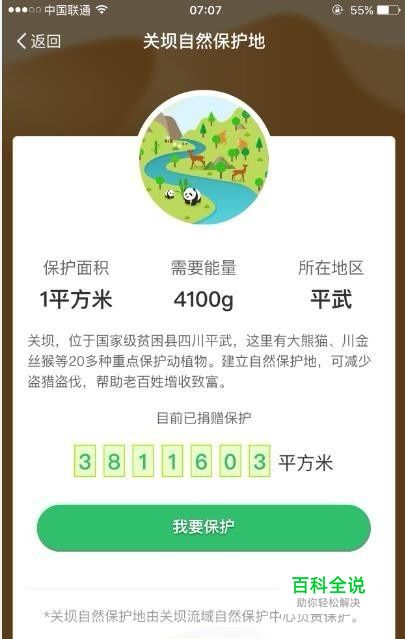 保护1平方米的关坝自然保护地,只需要4100g的能量哦,分享给大家,希望越来越环保~
