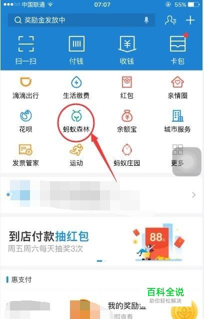 打开支付宝,找到蚂蚁森林点击进入。如果你的蚂蚁森林不在首页的导航栏里的话,可以点击更多去设置一下。