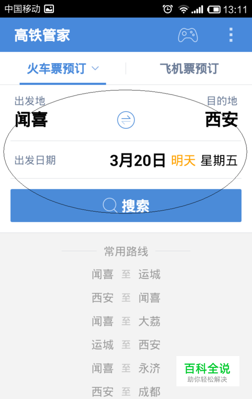 登陆之后选择好出发站到目的地的名称还有出发的时间,然后进行搜索