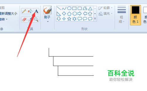 打开Windows画图工具,单击线段工具,把线粗设置为细线。按住shift键,拖动鼠标可以画出标准的水平线或竖直线,如下图所示。有多余部分可以使用橡皮擦擦除。