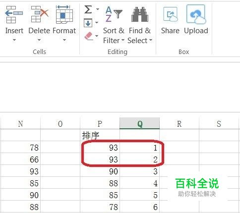 单击回车之后,不难发现,结果确实按照从大到小重新排列了,但对于有两个相同数字的情况,排序得到的结果也会依次递增显示,这时候我们不得不手动修改排名,如果数字非常多的话,工作量也会特别大.